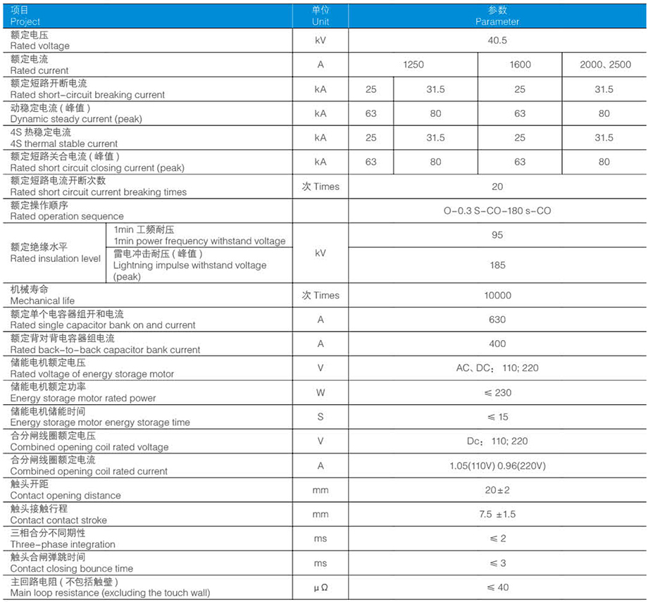 ZN85-40.5 戶內高壓真空斷路器適用于三相交流 50Hz、40.5kV 系統(tǒng)中,可供工礦企業(yè)、發(fā)電廠及變電站作為分合負荷電流、過載電流故障電流之用,并適用于頻繁操作場合。本斷路器采用上下布置結構,有效地降低斷路器的深度。并采用復合絕緣結構、三相滅弧室和相聯(lián)帶電體由三只獨立的環(huán)氧樹脂絕緣罩殼相隔離,采用復合絕緣結構之后,斷路器滿足正常運行條件下的空氣距離和爬距要求,并有效地減少了斷路器的體積,主導電回路真空滅弧室和動靜導電聯(lián)接安裝在絕緣筒內,使相間僅為 300mm。主回路電氣連接全部采用固定連接具有很高的可靠性。