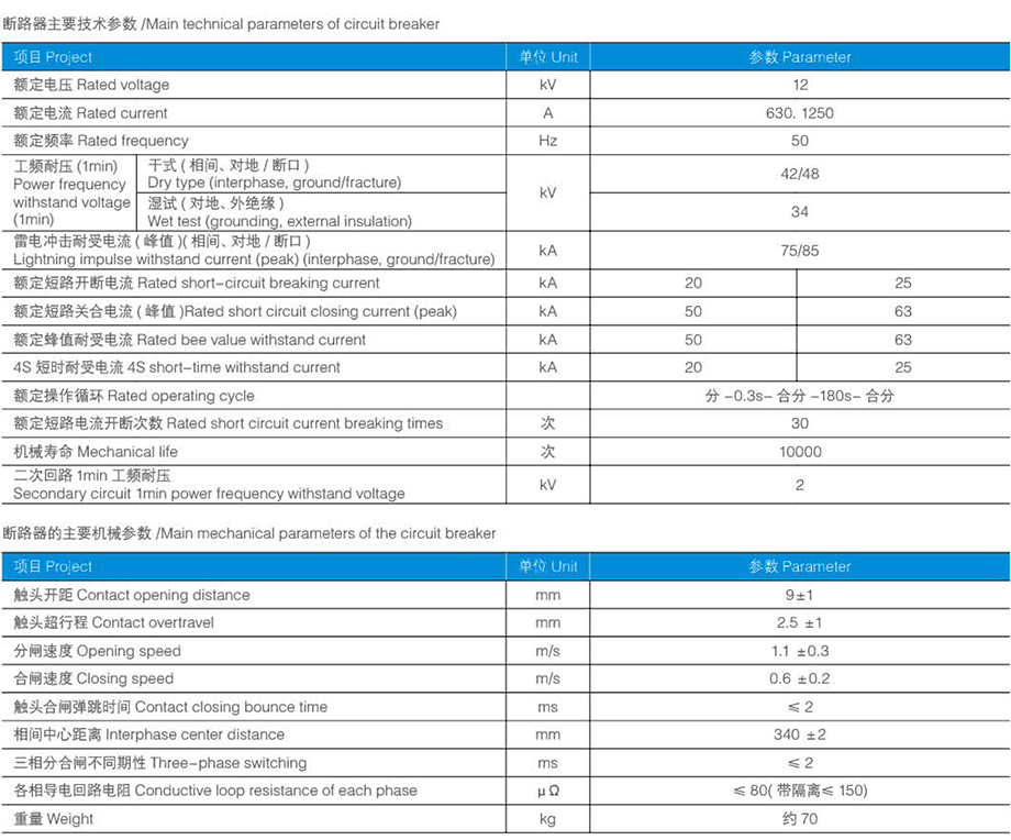 主要技術(shù)參數(shù)